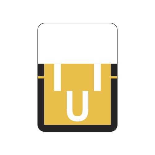 These are Tab 1307 Compatible letter “U” alpha labels. Each label wraps around the top of a file folder to label that folder for alphabetical filing. They feature a wrap-around solid light orange bar with a solid “U” character. The letter “U” will be visible on each side of the folder when applied. Each label is 1″ wide and 3/4″ high. Labels are laminated and sold in roll of 500.