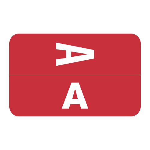 These are Tab/Smead ACC compatible letter “A” alpha labels. Each label wraps around the end of a file folder to label that folder for alphabetical filing. These labels feature a wrap-around solid red bar and a white colored letter “A” printed on a red background. The letter “A” will be visible on each side of the folder when applied. Each label is 1″ wide and 1-5/8″ high. Labels are laminated and sold in rolls of 250.