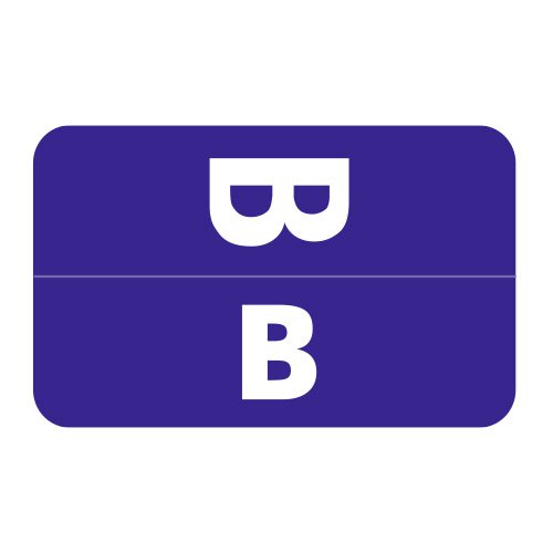 These are Tab/Smead ACC compatible letter “B” alpha labels. Each label wraps around the end of a file folder to label that folder for alphabetical filing. These labels feature a wrap-around solid royal blue bar and a white colored letter “B” printed on a red background. The letter “B” will be visible on each side of the folder when applied. Each label is 1″ wide and 1-5/8″ high. Labels are laminated and sold in rolls of 250.