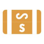 These are Tab/Smead ACC compatible letter “T” alpha labels. Each label wraps around the end of a file folder to label that folder for alphabetical filing. These labels feature a wrap-around solid gray bar and a white colored letter “T” printed on a red background. The letter “T” will be visible on each side of the folder when applied. Each label is 1″ wide and 1-5/8″ high. Labels are laminated and sold in rolls of 250.