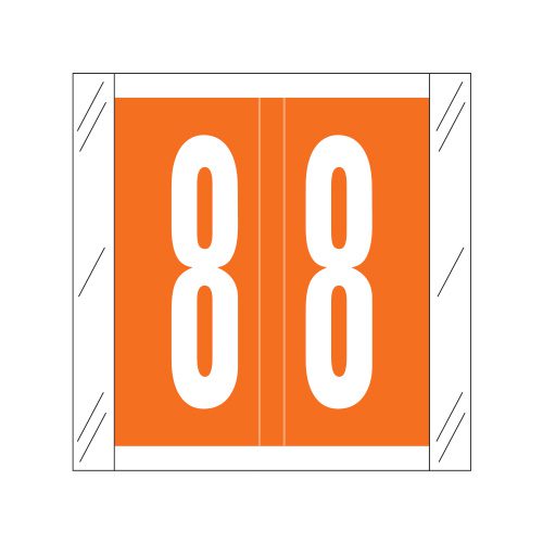These are Tabbies 11500 compatible “8” numeric labels. Each label wraps around the end of a file folder to label that folder for numerical filing. They feature a wrap-around solid orange color bar with a solid white “8”. The “8” will be visible on each side of the folder when applied. Each label is 1-1/2″ wide and 1-1/2″ high. Labels are laminated and sold in rolls of 500.