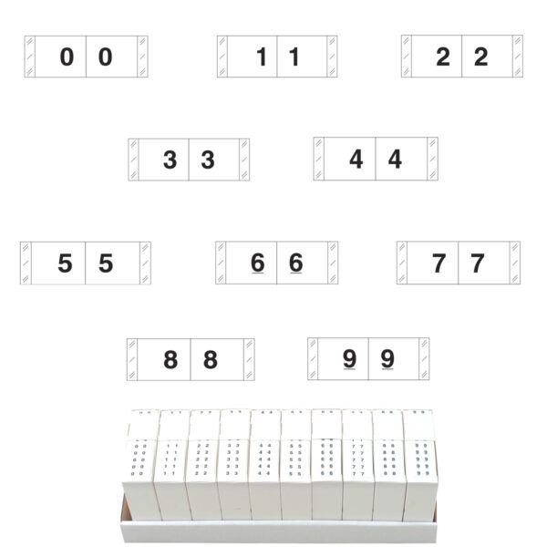These are Tabbies 11830 compatible Numerical Labels. Each label wraps around the end of a file folder to label that folder for numerical filing. They feature a wrap-around solid white color bar with a solid black number. The number will be visible on each side of the folder when applied. Each label is 1-1/2″ wide and 1″ high. Labels are laminated and sold in 10 rolls of 500.