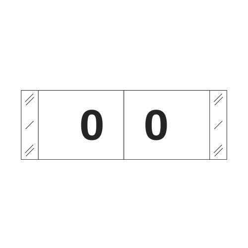 These are Tabbies 11830 compatible “0” numeric labels. Each label wraps around the end of a file folder to label that folder for numerical filing. They feature a wrap-around solid ywhite color bar with a solid black “0”. The “0” will be visible on each side of the folder when applied. Each label is 1-1/2″ wide and 1/2″ high. Labels are laminated and sold in rolls of 500.