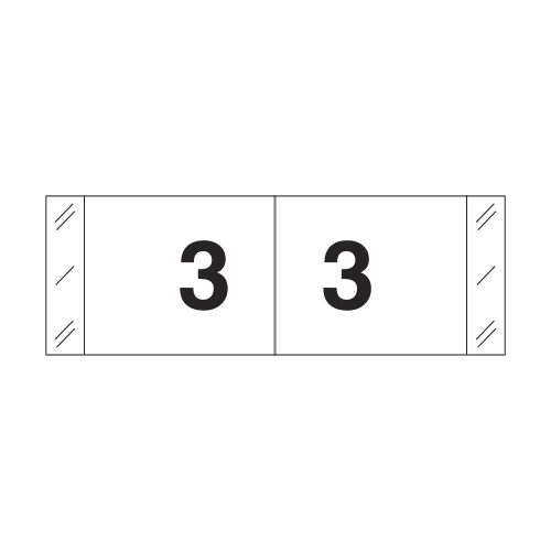 These are Tabbies 11830 compatible “3” numeric labels. Each label wraps around the end of a file folder to label that folder for numerical filing. They feature a wrap-around solid white color bar with a solid black “3”. The “3” will be visible on each side of the folder when applied. Each label is 1-1/2″ wide and 1/2″ high. Labels are laminated and sold in rolls of 500.