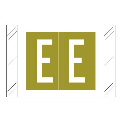 These are Tabbies 12000 Compatible Letter “E” Alpha Labels. Each label wraps around the end of a file folder to label that folder for alphabetical filing. These labels are solid pale green with a double white letter “E” character. The “E” will be visible on each side of the folder when applied. Each label is 1″ wide x 1-1/2″ high. Labels are laminated and sold in roll of 500.