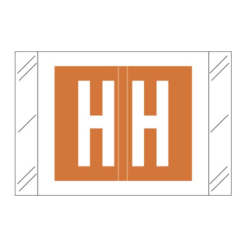 These are Tabbies 12000 Compatible Letter “H” Alpha Labels. Each label wraps around the end of a file folder to label that folder for alphabetical filing. These labels are solid orange with a double white letter “H” character. The “H” will be visible on each side of the folder when applied. Each label is 1″ wide x 1-1/2″ high. Labels are laminated and sold in roll of 500.