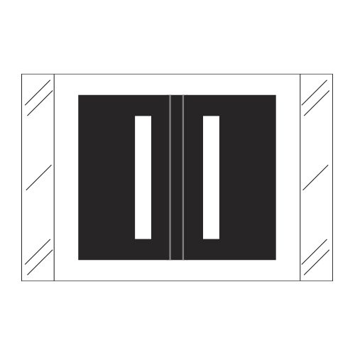 These are Tabbies 12000 Compatible Letter “I” Alpha Labels. Each label wraps around the end of a file folder to label that folder for alphabetical filing. These labels are solid black with a double white letter “I” character. The “I” will be visible on each side of the folder when applied. Each label is 1″ wide x 1-1/2″ high. Labels are laminated and sold in roll of 500.