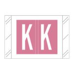 These are Tabbies 12000 Compatible Letter “L” Alpha Labels. Each label wraps around the end of a file folder to label that folder for alphabetical filing. These labels are solid dark pink with a double white letter “L” character. The “L” will be visible on each side of the folder when applied. Each label is 1″ wide x 1-1/2″ high. Labels are laminated and sold in roll of 500.