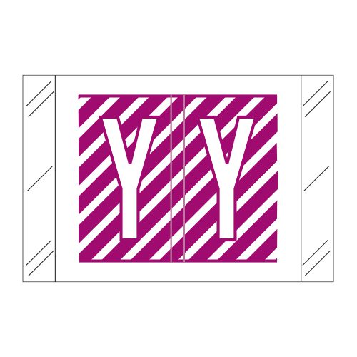 These are Tabbies 12000 Compatible Letter “Y” Alpha Labels. Each label wraps around the end of a file folder to label that folder for alphabetical filing. These labels are striped dark pink with a double white letter “Y” character. The “Y” will be visible on each side of the folder when applied. Each label is 1″ wide x 1-1/2″ high. Labels are laminated and sold in roll of 500.