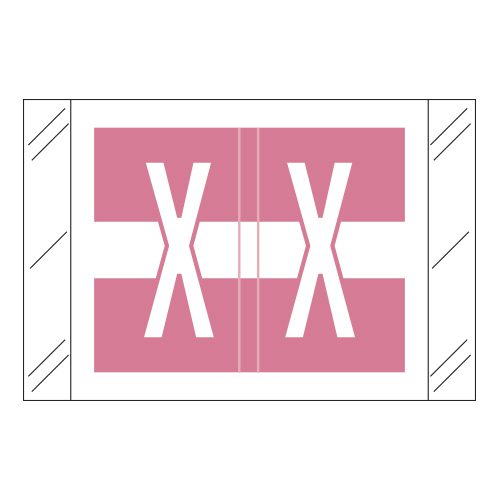 These are Tabbies 12030 Compatible Letter “X” Alpha Labels. Each label wraps around the end of a file folder to label that folder for alphabetical filing. These labels are solid pink with a double white letter “X” character. The “X” will be visible on each side of the folder when applied. Each label is 1″ wide x 1-1/2″ high. Labels are laminated and sold in roll of 500.