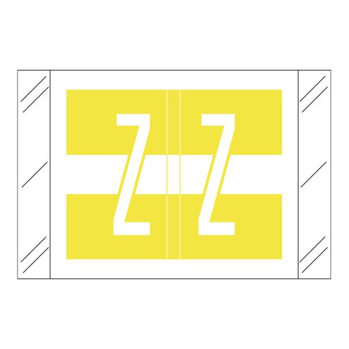 These are Tabbies 12030 Compatible Letter “Z” Alpha Labels. Each label wraps around the end of a file folder to label that folder for alphabetical filing. These labels are solid yellow with a double white letter “Z” character. The “Z” will be visible on each side of the folder when applied. Each label is 1″ wide x 1-1/2″ high. Labels are laminated and sold in roll of 500.