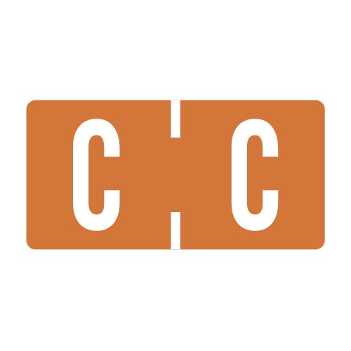 These are TBAV Compatible letter “C” alpha labels. Each label wraps around the end of a file folder to label that folder for alphabetical filing. They feature a wrap-around solid dark orange bar with a solid “C” character. The letter “C” will be visible on each side of the folder when applied. Each label is 1″ wide and 1/2″ high. Labels are laminated and sold in rolls of 500.