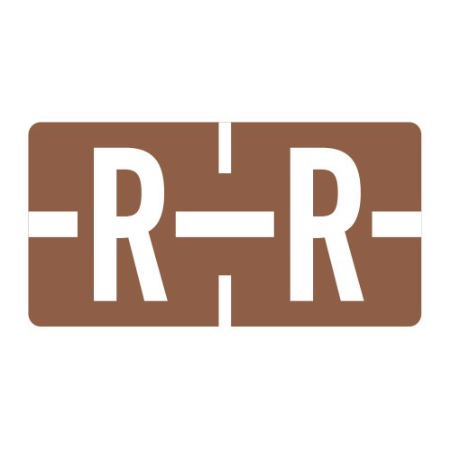These are TBAV Compatible letter “R” alpha labels. Each label wraps around the end of a file folder to label that folder for alphabetical filing. They feature a wrap-around solid brown bar with a solid “R” character. The letter “R” will be visible on each side of the folder when applied. Each label is 1″ wide and 1/2″ high. Labels are laminated and sold in rolls of 500.