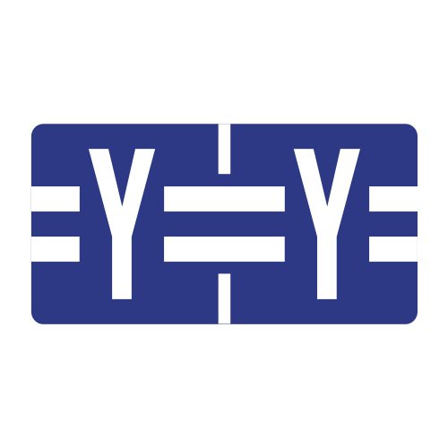 - Each label features a solid white “Y” on a royal blue background on each side of the label.